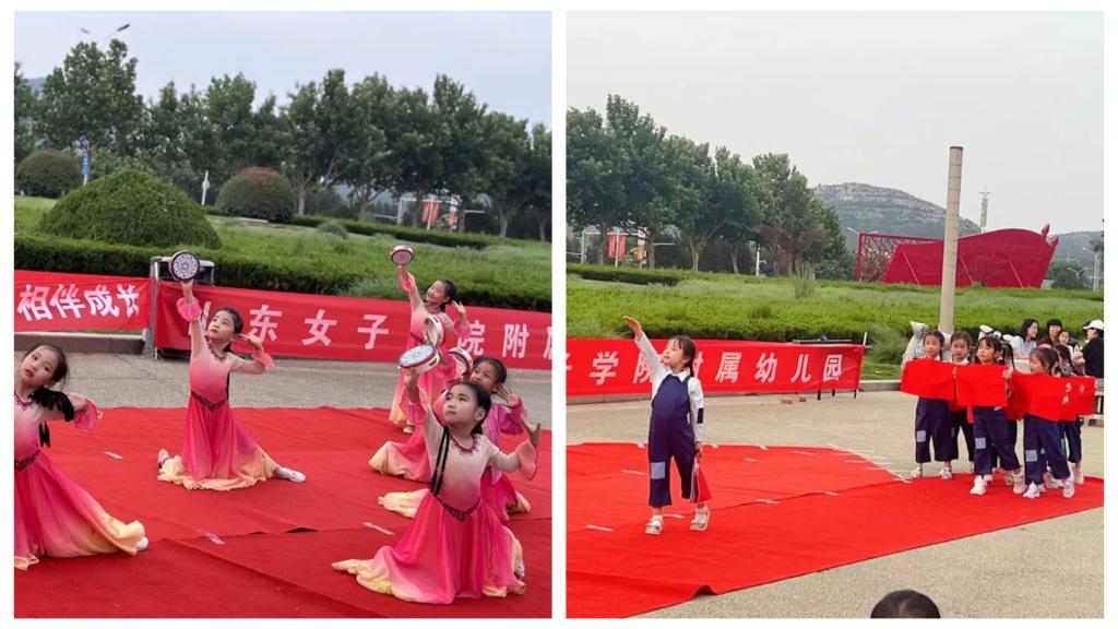 同时,附属幼儿园在活动现场设计组织了丰富多彩、妙趣横生的亲子游戏,幼儿和家长携手参与、亲密互动,活动现场处处充满欢声笑语,精彩不断。附属幼儿园的小朋友们还带来了精心排练的舞蹈,赢得了社区居民的阵阵掌声,活动拉近了家、园、社的距离。