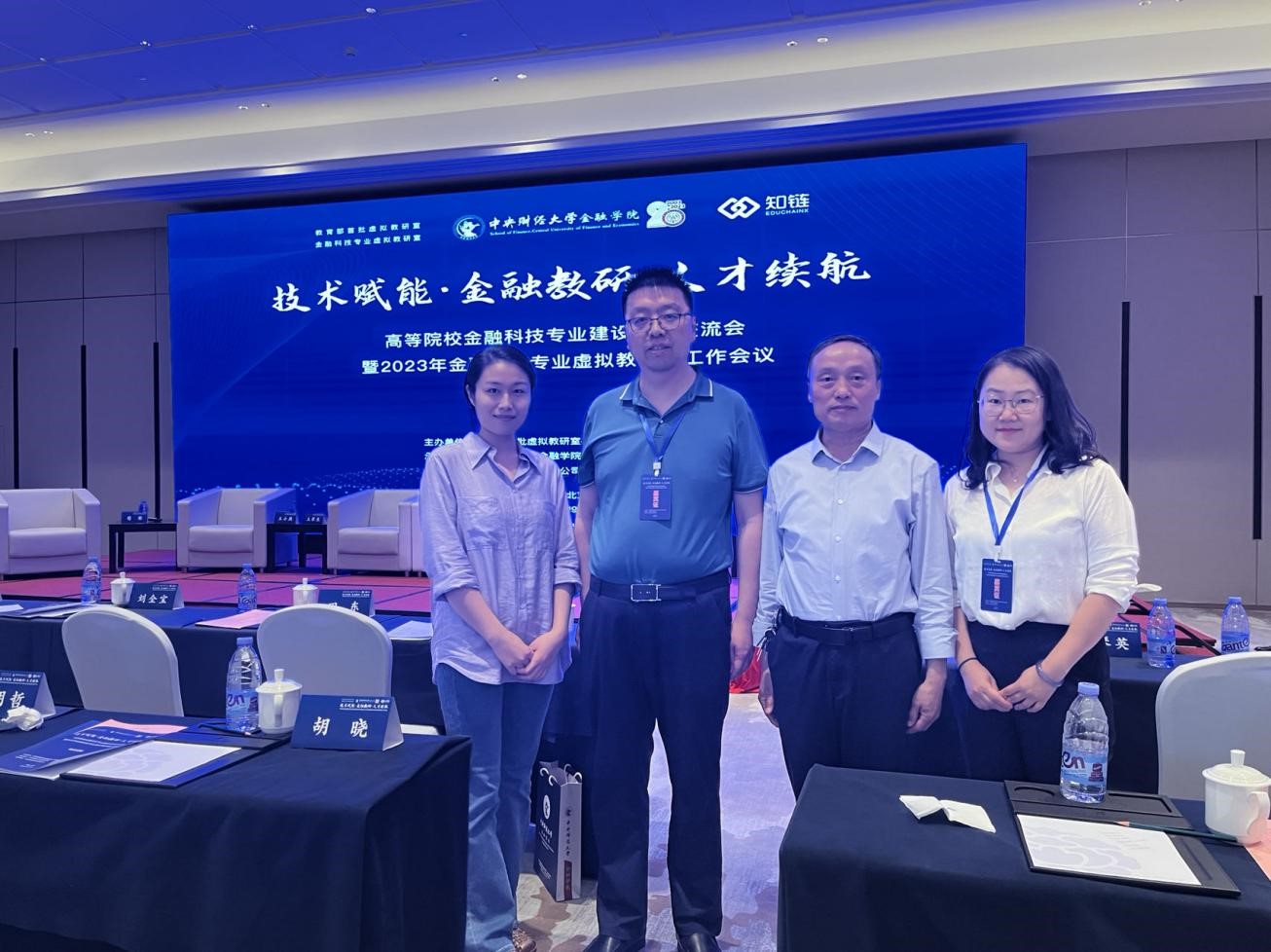 为深入贯彻主题教育“学思想、强党性、重实践、建新功”的总要求,紧紧锚定主题教育目标任务,推动经济学院学科发展,近日经济学院院长沈传河、副院长冯亮、教师温春然、赵晓娟一行4人参加了由教育部首批虚拟教研室——金融科技专业虚拟教研室主办,中央财经大学金融学院承办,北京知链科技有限公司协办的“高等院校金融科技专业建设实践交流会暨金融科技专业虚拟教研室工作会议”。在本次会议上,经济学院获批加入教育部金融科技专业虚拟教研室成员单位。