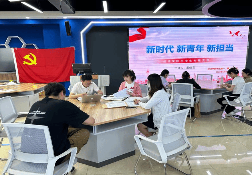 为加强毕业生党员教育,引导毕业生党员坚定理想信念、发挥先锋模范作用,切实做好文明安全离校等各项工作,经济学院学生党支部于6月8日开展毕业生党员专题党课。本次党课由学生第一党支部书记戴晓艺主讲,经济学院学生第一、第二党支部全体党员参加。