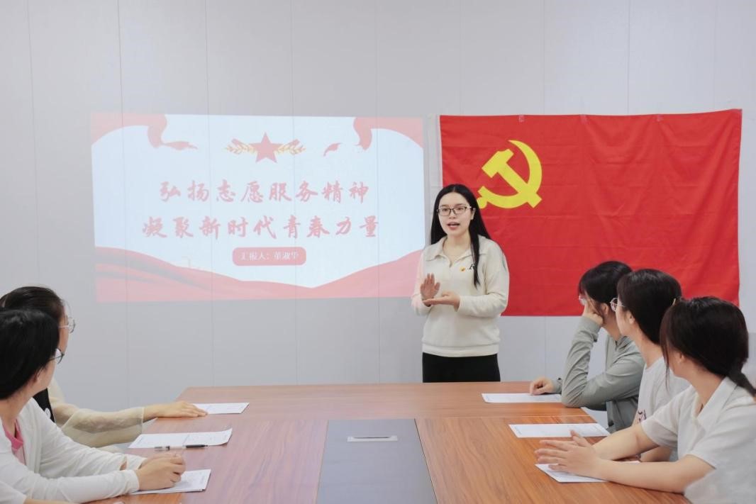 座谈结束后,学生第二党支部书记董淑华老师进行了《弘扬志愿服务精神,凝聚新时代青春力量》专题党课,提出当代青年大学生要坚定理想信念,以奋发昂扬的进取姿态和蓬勃向上的精神面貌投身社会服务,回报祖国。
