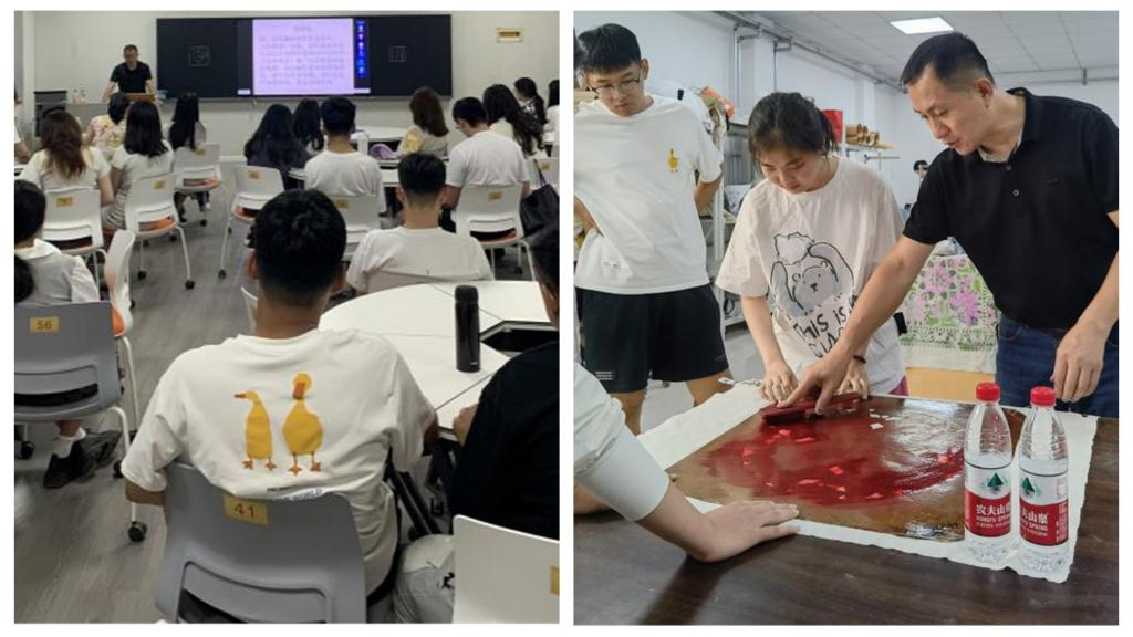 近日,学校第六届文化艺术节系列活动之“中国传统彩印花布技艺”大师课在博学楼101智慧教室举办,中国传统彩印花布传承人张继胜受邀为师生授课,艺术设计学院副院长赵崇立、各学院学生代表参与。