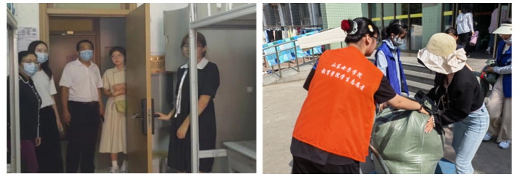 女院“团小青”志愿者发起行动集结号,开展“你迎我进校,我送你远航”暖心志愿服务活动,在校园设立4处“团小青”志愿服务站点,帮助毕业生看管、搬运行李,协助毕业生办理离校手续等。传媒学院团总支组织志愿者在会议室整理毕业生的各项证书和礼品,协助老师发放毕业生相关材料;创新创业学院团总支组织在校学生成立“一对一”志愿者帮扶小组,完成13个毕业生宿舍的退宿、行李搬运等事项;会计学院团总支组织120名青年学生志愿者帮助427名毕业生有序顺利离校;教育学院团总支组织在校生学生走进毕业生宿舍,协助毕业生做好退宿相关手续,让毕业生随时随地感受学校的关心关爱。