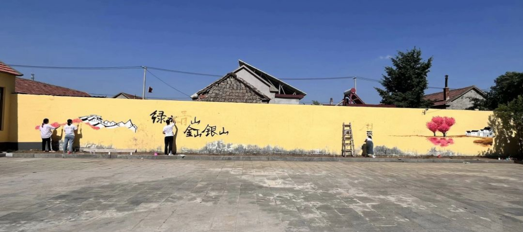 在横沟村,团队的墙绘小组成员通过画笔,将他们对“乡村振兴”的理解跃然墙面。烈日下,虽然脸晒黑了,胳膊破皮了,衣服染上了各种染料,但是大家脸上却洋溢着灿烂的笑容,满满的成就感。