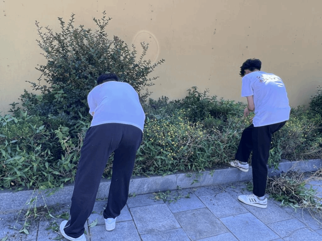 走访的过程中发现村民辛苦劳作,便立马上前帮助清理村庄卫生。