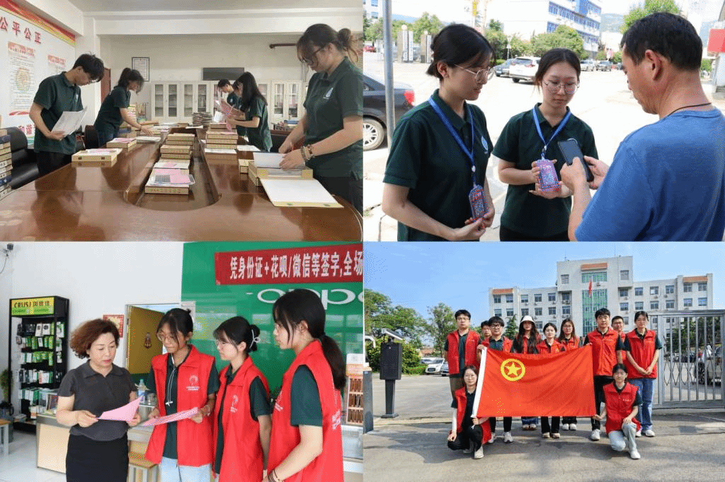 图为服务队成员挂职锻炼和服务实践活动照片