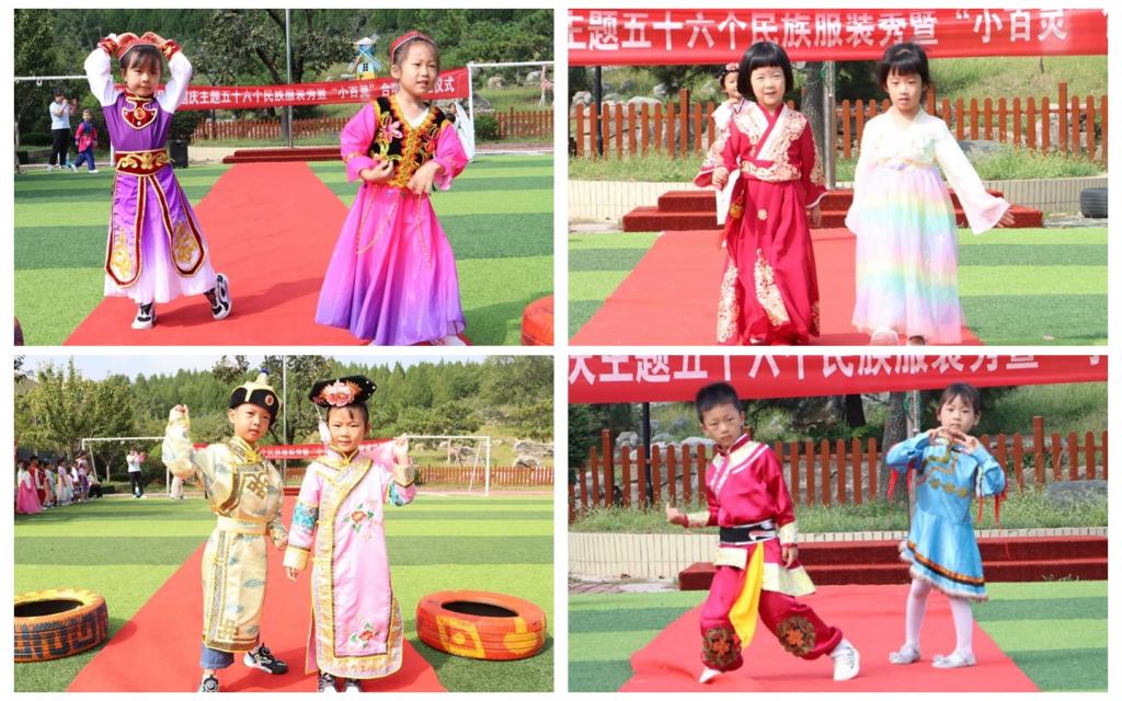 国旗下,幼儿园园长发表致辞,祝福伟大的祖国国泰民安、繁荣富强,祝福小朋友们健康快乐成长。幼儿园举行了“小百灵”合唱团成立仪式,并邀请学校音乐学院教师秦利伟担任特邀团长。小百灵合唱团小团员代表发言,表示将与小朋友们一起,用最动听的歌声为祖国妈妈献上最美好的生日祝福,祝愿祖国繁荣昌盛,祝愿所有小朋友们乘着歌声的翅膀越飞越高。接下来,小朋友们用生动欢快的歌舞《我的祖国》《祖国祖国我的家》等表达了对祖国母亲的美好祝福;齐鲁工业大学大学生教官示范团的大学生们现场表演军体拳,为小朋友们展现了当代大学生的蓬勃朝气,引来阵阵喝彩;学校音乐学院的大学生代表用歌曲《明天更美好》唱出对祖国和幼儿园小朋友的美好祝福;教师代表舞蹈《点绛唇》展现了中华优秀传统舞蹈之美。最后,幼儿园全体小朋友们穿着美丽的民族服装上演了一场服装T台秀,身着各民族服装的小朋友们纷纷登台亮相,展现全国各族人民一家亲,让孩子们在走秀的过程中感受不同民族的服饰特点。