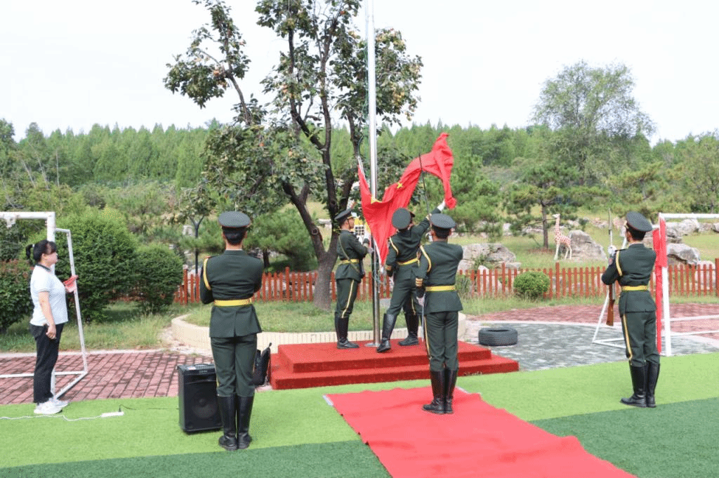 学校附属幼儿园邀请齐鲁工业大学大学生教官示范团的同学们担任本次升旗仪式的国旗护卫队。伴随着庄严雄壮的国歌,全体师生行注目礼,注视着鲜艳的五星红旗冉冉升起,点燃了小朋友们心中爱国热情。
