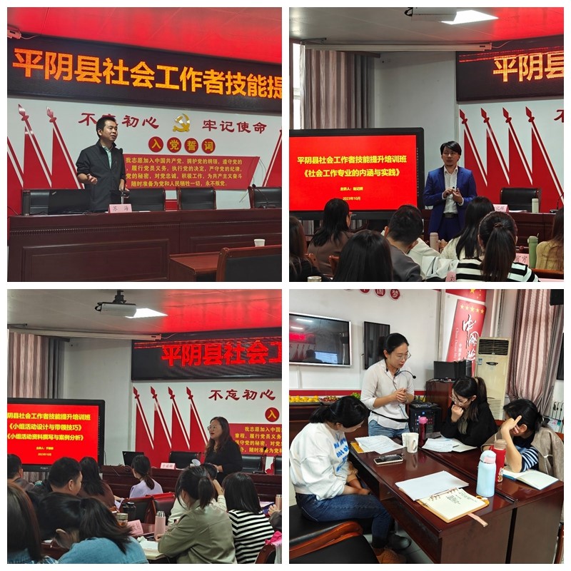 为推进政校协作,加强专业与地方民政部门联系,充分发挥高校在推进济南市社会工作站专业建设及发展等方面的作用,应平阴县民政局、平阴县社会工作总站的邀请,社会工作教研室苏海、赵记辉、于丽娜、刘晓甜四位教师为社会工作者开展专业培训,为全县社会工作赋能。