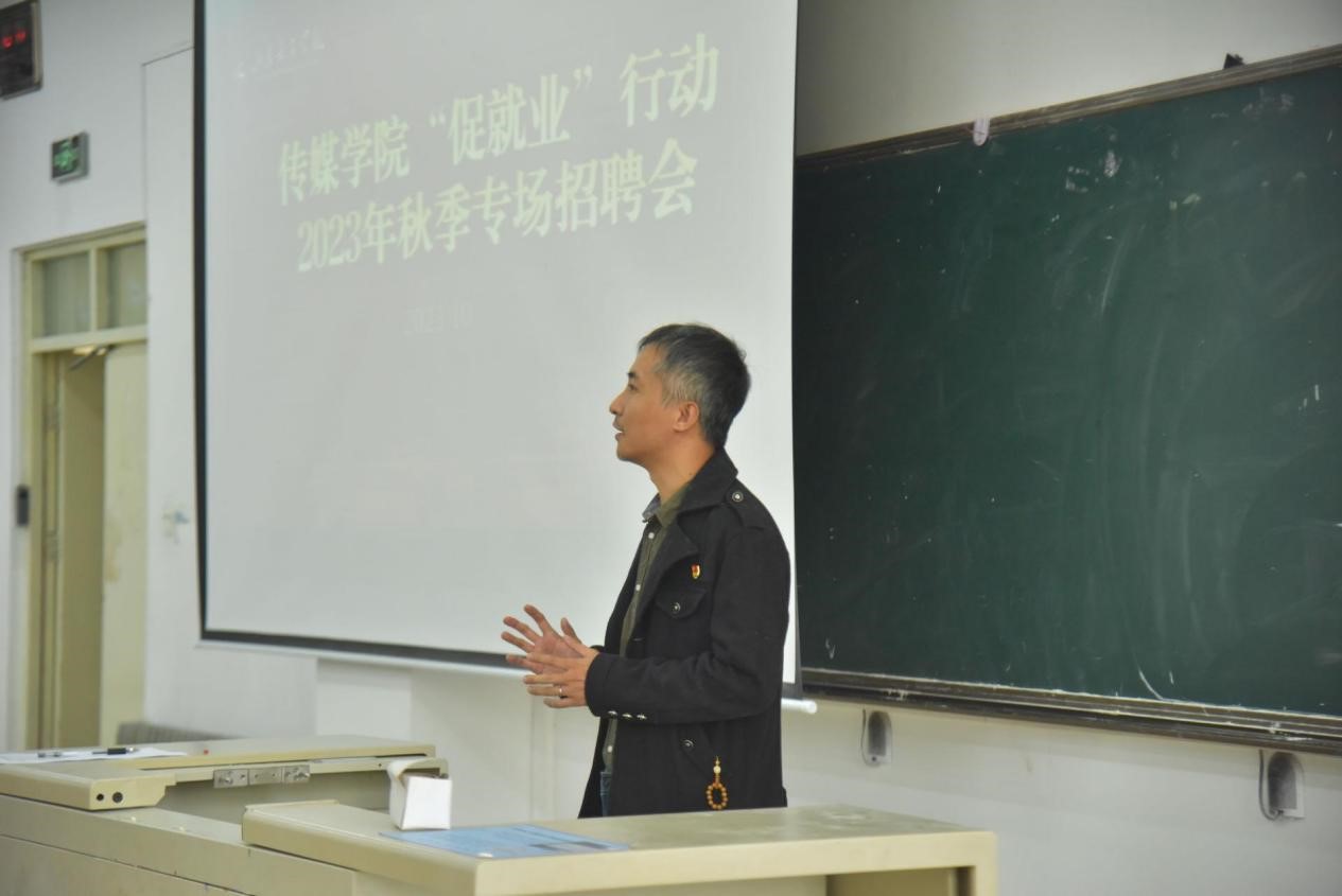 10月26日下午,传媒学院“促就业”行动2023年秋季专场招聘会在博文楼210举行。会议由传媒学院党总支副书记叶小华主持。