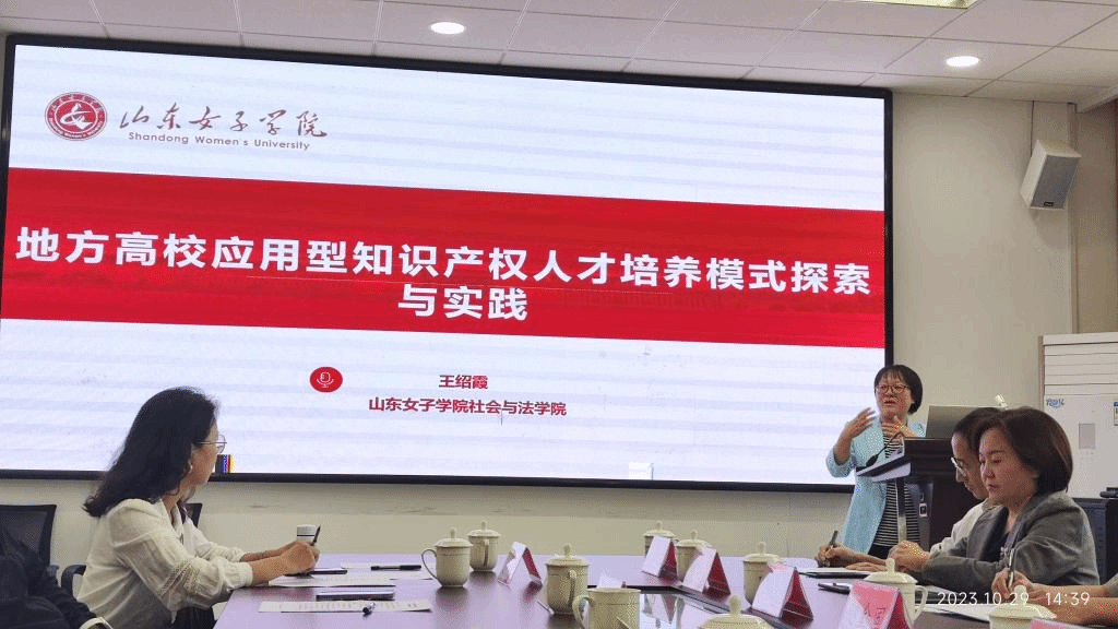 会议中,王绍霞就贯彻习近平法治思想、培养创新型知识产权法治人才进行主题发言,并分享了学院近十年来立足于服务地方经济,培养应用型知识产权法治人才的经验和成果。石慧就知识产权专业课程思政建设过程中的体悟进行了发言。两位老师的发言得到了与会专家的一致肯定。