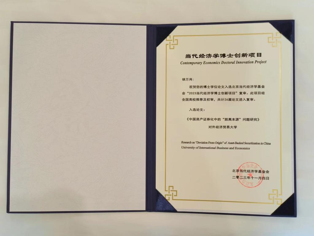 徐万肖成功入围当代经济学博士创新项目,显示出该教师在国内当代经济学领域所做贡献得到了领域肯定,同时又为我校应用经济学学科发展注入了新活力,为下一步学科团队建设奠定了坚实基础。