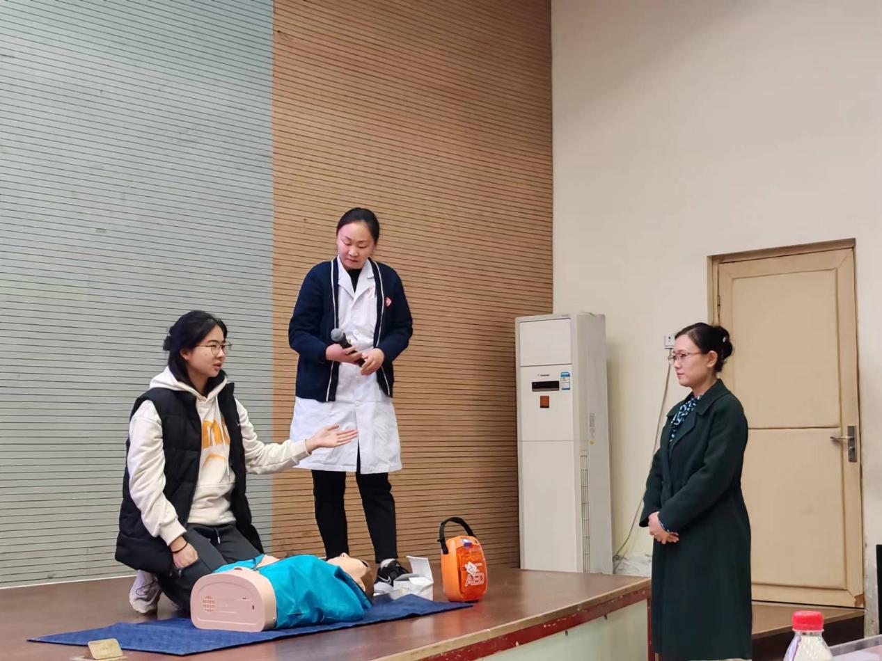 杨慧军为师生们讲解了女性常见病防治知识,从专业角度,给在场师生提供知识和指导。校医院工作人员给师生们讲解了基本急救知识和技能,并与同学们互动交流。