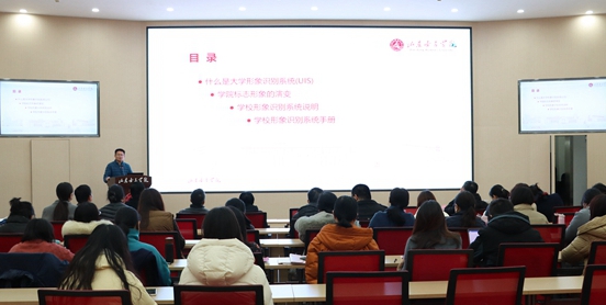 为进一步做好学校形象识别系统的规范使用工作,11月16日,学校在求真楼报告厅举行宣传思想文化工作系列业务培训暨学校形象识别系统使用视范报告会。报告会邀请学校视觉形象识别系统项目的主要设计者、艺术设计学院副院长赵崇立就学校形象识别系统的使用规范作报告。各部门、各单位分管宣传思想文化工作的负责人和办公室主任参加报告会。