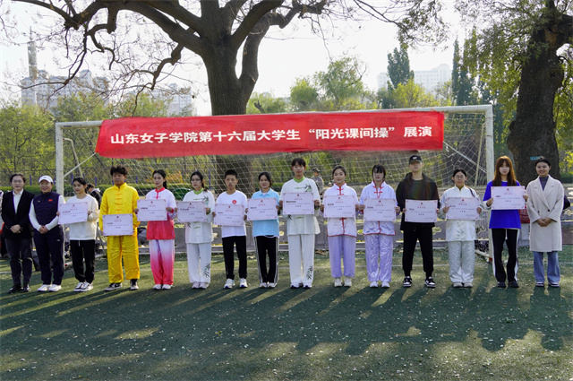11月21日中午,学校第十六届大学生“阳光课间操”展演赛在田径场举行,团委、学生处、体育教学部老师担任评委,12个学院的学生组队参赛。