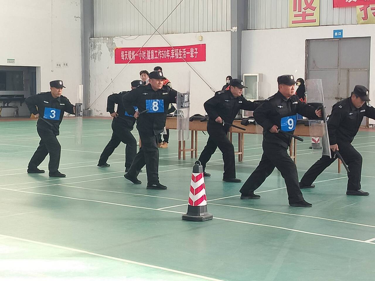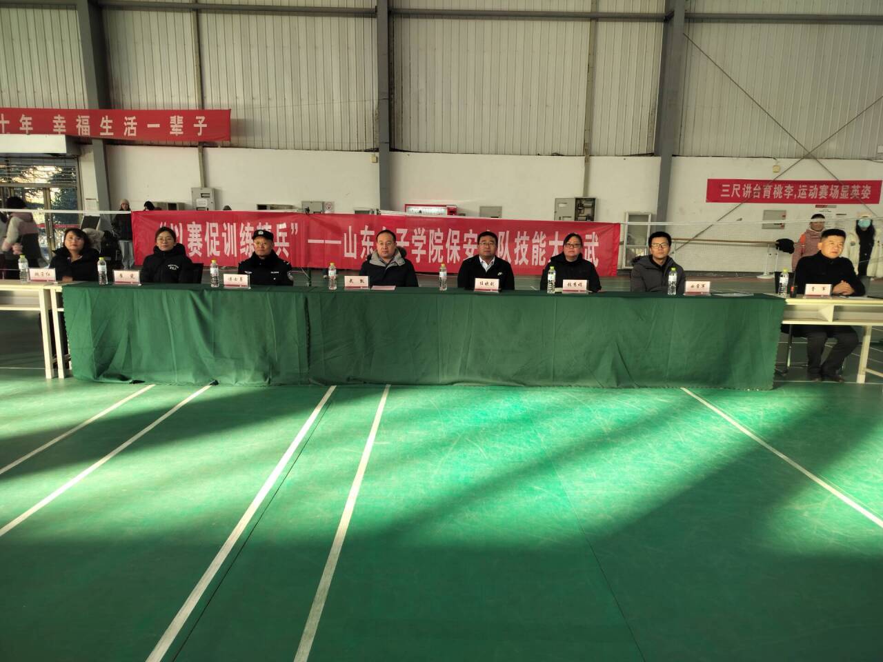 为了进一步激发学校保安人员立足岗位建功立业热情,提升队伍整体素质,推动队伍专业化、职业化建设,11月30日上午,学校第一届保安中队技能大比武竞赛在综合训练馆举办。驻校高级警长傅士勇和学生工作处、团委、保卫处、艺术设计学院、济南振邦保安公司相关负责同志参加活动。