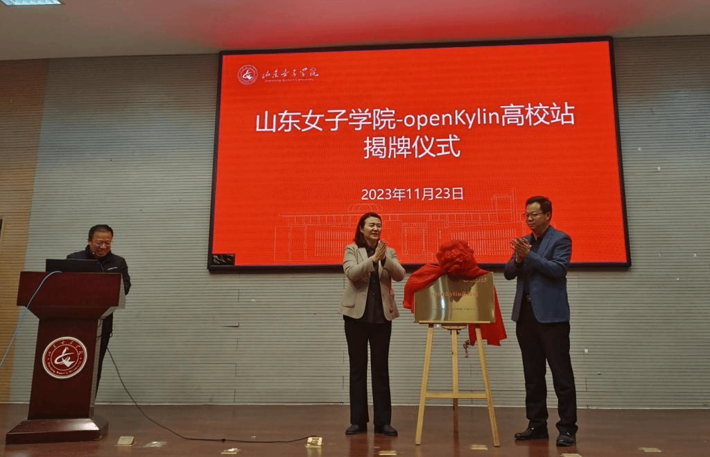 随后,李缨和李云龙共同为山东女子学院-openKylin高校站揭牌。