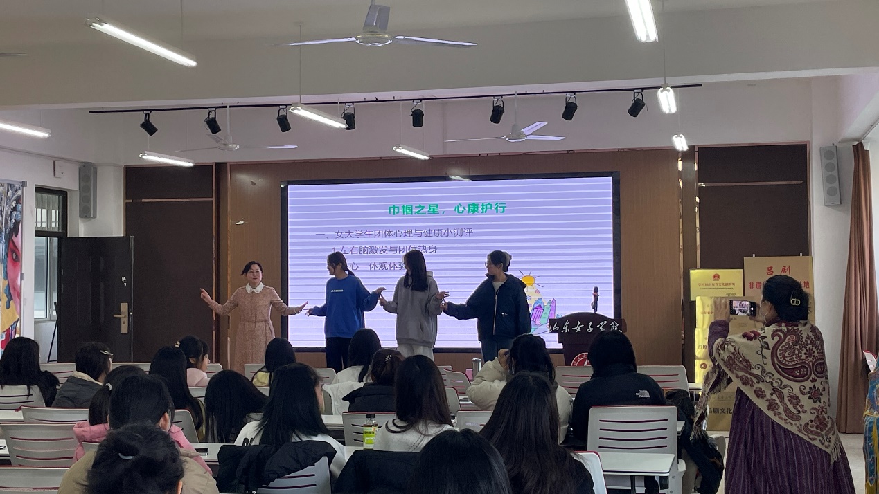 陈晓燕首先引领大家做了“左右脑激发”和“背背靠”团体心理辅导活动,拉近师生距离。接着她对大家进行了身心健康的小测评,从“确立目标、认识自我、正向思维、爱情与婚姻、社会支持系统、未来规划”六个方面,教授女大学生们“积极心理品质”的塑造理念与方法,为女大学生成长为“巾帼之星”减压赋能、心康护行。