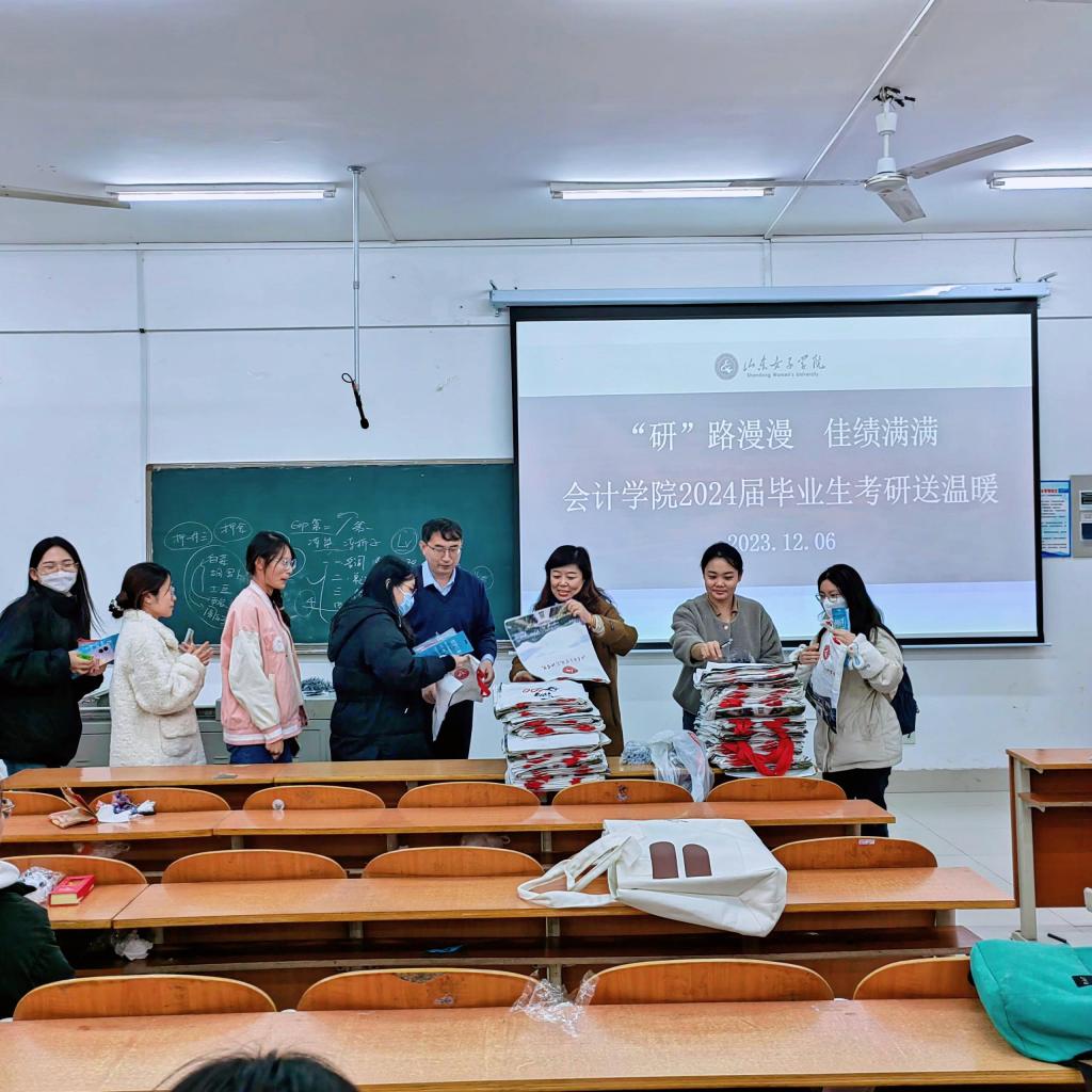 近日,会计学院、创新创业学院也开展了丰富多彩的考研送温暖活动。