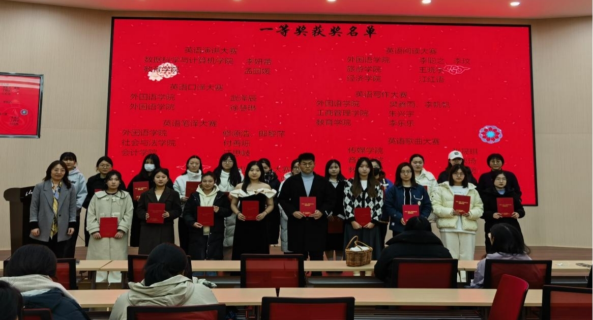 本次活动表彰了在2023年度在英语演讲、写作、阅读、口译、笔译、配音、歌曲、词汇等九项大赛中获得优异成绩的学生、并给获得一、二、三等奖的学生代表颁发了证书与奖品。