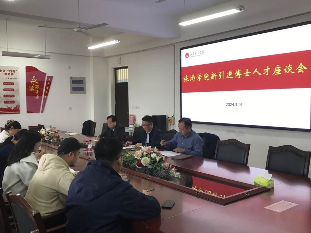 3月14日,旅游学院在求真楼219室举行“新引进博士人才座谈会”,学院党委书记吕建国、院长张明、副院长鲁春晓、王晓伟教授、5名新进博士参加座谈。