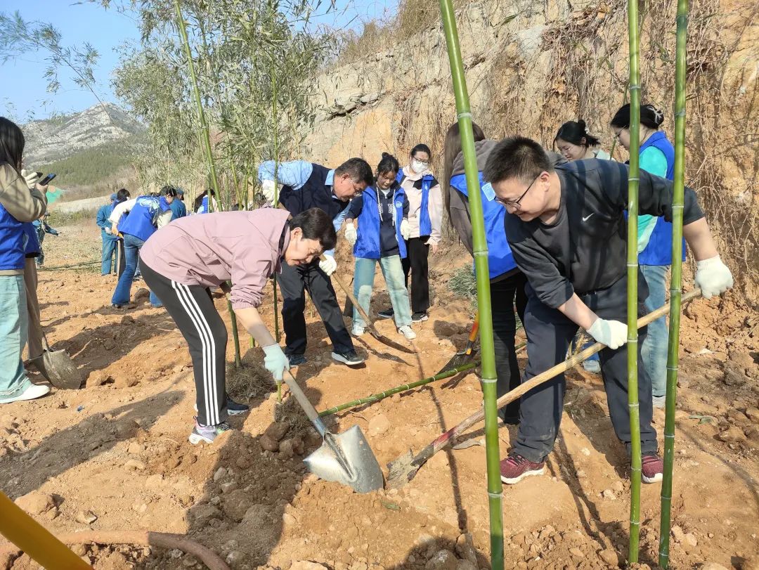 副校长田立新带领后勤管理处(基建处)、团委、合作发展处等部门教职工以及学生志愿者50余人在龟山片区开展植树活动。师生们精神抖擞,干劲十足,分工合作,井然有序。通过挖坑放苗、扶正培土、取水灌溉,新栽植的绿竹和补栽的雪松迎风挺立,绿意盎然。