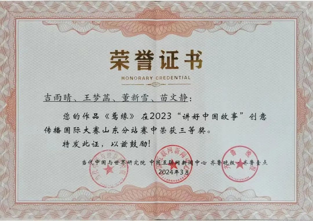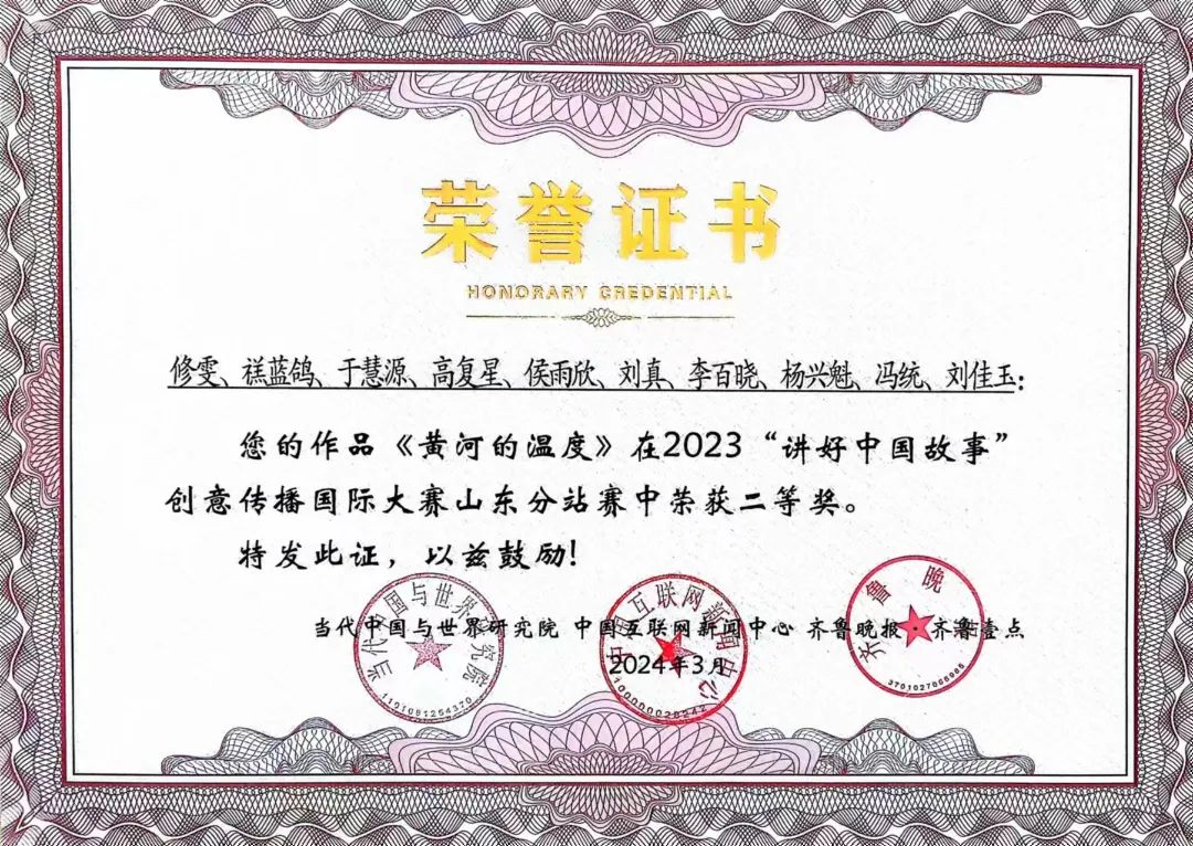3月26日,2023“讲好中国故事”创意传播国际大赛全国定评会议暨山东分站赛颁奖典礼成功举办。《黄河的温度》等3件作品分别获得山东分站赛二、三等奖。山东女子学院获评优秀组织单位。