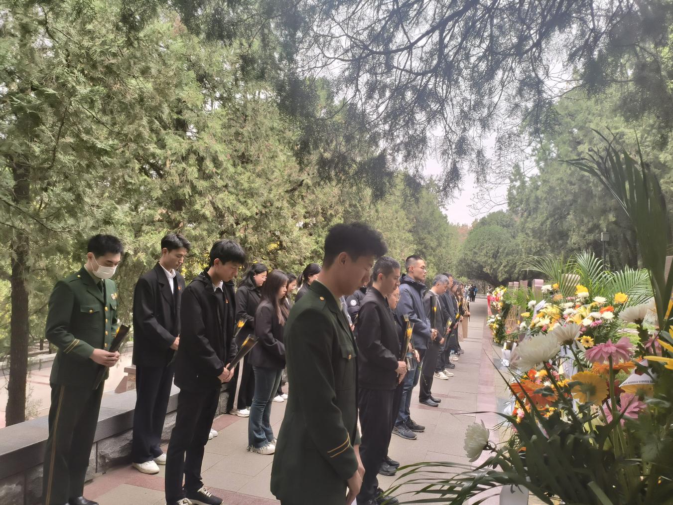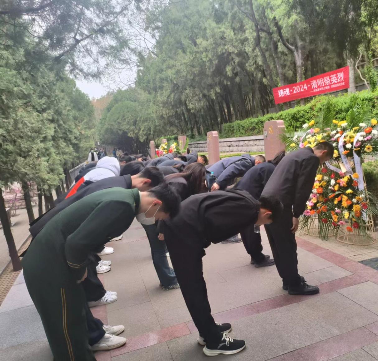 春雨寄哀思,又是清明时。为深入学习贯彻党的二十大精神,不忘初心使命,赓续红色血脉,坚定理想信念,加强爱国主义教育,引导广大学生树立正确的价值观、人生观、世界观。4月3日下午,学校学生工作处在济南革命烈士陵园组织开展了“踔厉奋发强国防,勇毅前行向复兴”清明祭英烈活动。学生工作处、武装部国防教育工作负责人、各二级学院国防教育辅导员、各学院学生党员代表,退役士兵代表,弘星计划学生骨干代表等46人参加。