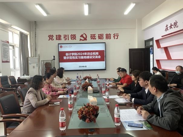 为充分挖掘育人资源,近日,学院邀请济南中盛财税事务所有限公司等企业于博雅楼301举办2024年访企拓岗暨示范性实习基地建设座谈会,学院党委书记、副院长、学工办主任等参会。