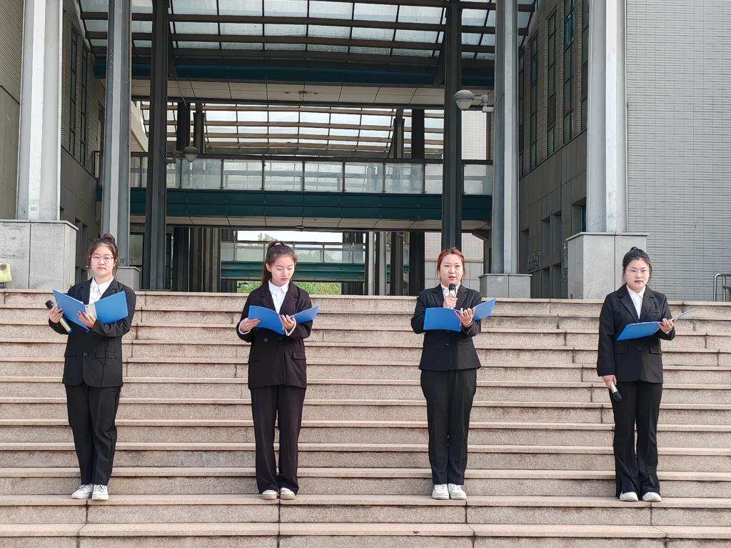 主题教育环节,4名优秀学生代表带来朗诵《国家安全在我心,吾辈青年绘宏图》,他们慷慨激昂、热情豪迈,用青年声音传递出女院学子浓浓的爱国之心、报国之情、卫国之志。