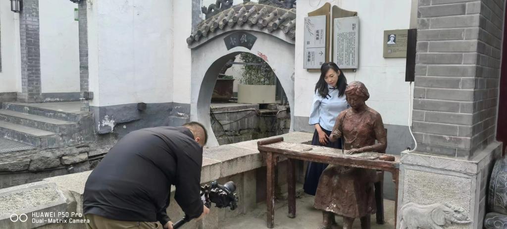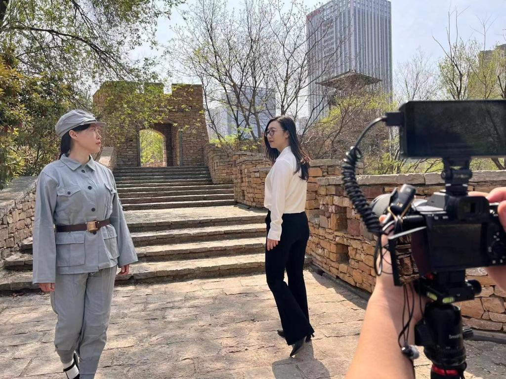 4月4日清明节当天,刘莹同志以讲述者的身份从起凤桥街入口处开始进行讲解。拍摄采用情景再现的方式表现“腾蛟起凤,巾帼辛锐”这一党课主题,力图展现辛锐烈士是如何从一名锦衣玉食的大家闺秀,成长为一名光荣的八路军女战士;是如何在抗战中英勇战斗,最终献出年仅23岁的生命。
