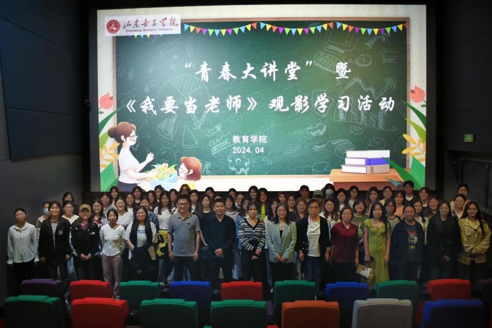 为不断推进“大思政课”协同育人建设,4月25日下午,教育学院“青春大讲堂”暨《我要当老师》观影学习活动在求真楼一楼报告厅举行。教育学院党委书记崔江宁、各教研室教师、辅导员和学生代表,百余人同上一堂思政课。学院党委副书记路敏主持活动。