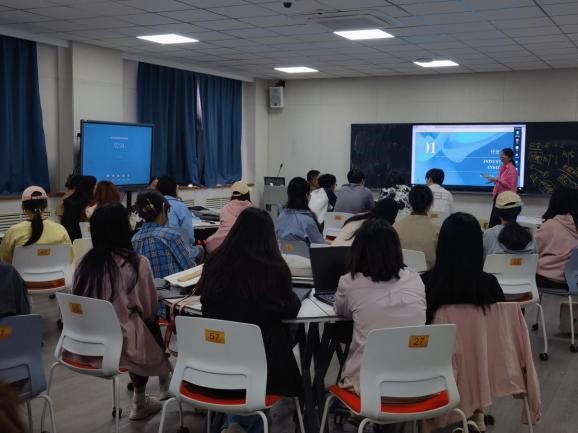 5月7日,艺术设计学院视觉传达设计专业开展产教融合——行业导师进课堂活动,邀请慧海文化创意(山东)有限公司副总经理雷东丽走进《品牌形象设计》课程的课堂,与校内教师周静、陈媛共同为2021级视觉传达设计专业同学带来一堂生动的设计现场教学和案例分享。