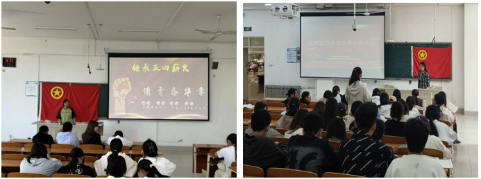 在五四青年节来临之际,组织各团支部于开展“传承五四薪火 谱青春华章”主题团课学习活动。活动中,各团支部组织支部学生学习习近平总书记在五四青年节的殷切寄语,观看“105秒!这就是青春的样子”视频,同时开展座谈交流会,分享学习心得,激发广大青年担当使命的思想自觉和行动自觉,以奋斗姿态绽放最美青春,为实现中华民族的伟大复兴而不懈奋斗!