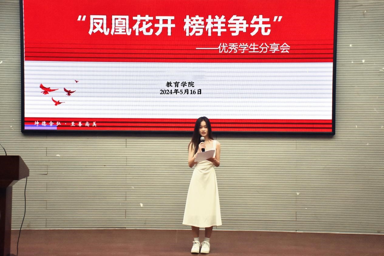 为进一步贯彻党的教育方针,落实立德树人的根本任务,加强资助育人工作,激励受助学生自强不息,提升家庭经济困难学生的自我发展意识和能力,教育学院于5月16日图书馆一楼报告厅举办“凤凰花开,榜样争先”优秀学生分享会活动。会议邀请到了数据科学与计算机、教育学院等十个学院的十名获得过各类资助类奖助项目的优秀学生带来分享。