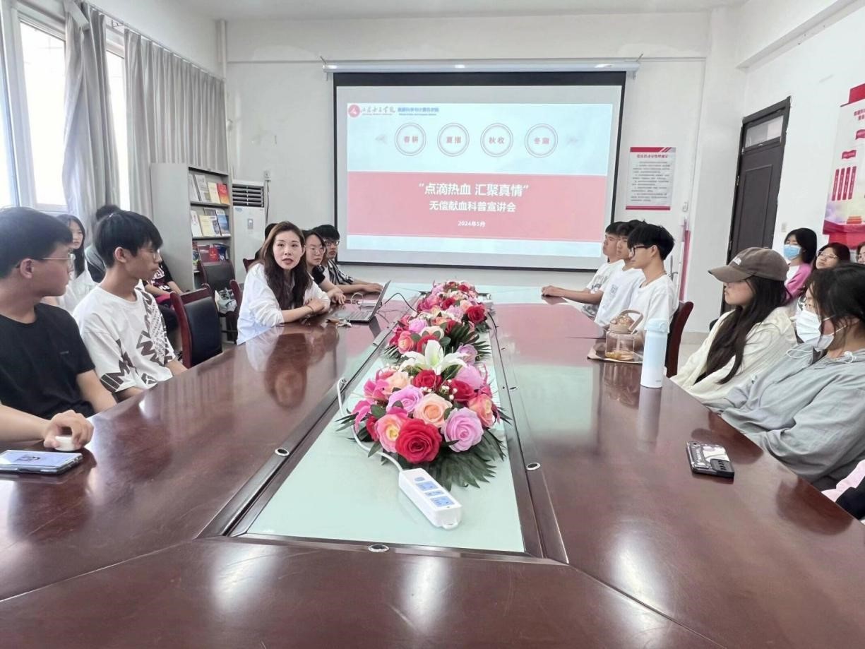 学院开展“点滴热血 汇聚真情”无偿献血科普宣讲会,在讲座过程中,学院老师围绕同学们关心的献血相关话题,从无偿献血的意义、志愿者故事、相关法律法规等方面,通过生动的语言和PPT展示,直观形象地讲解了无偿献血知识。