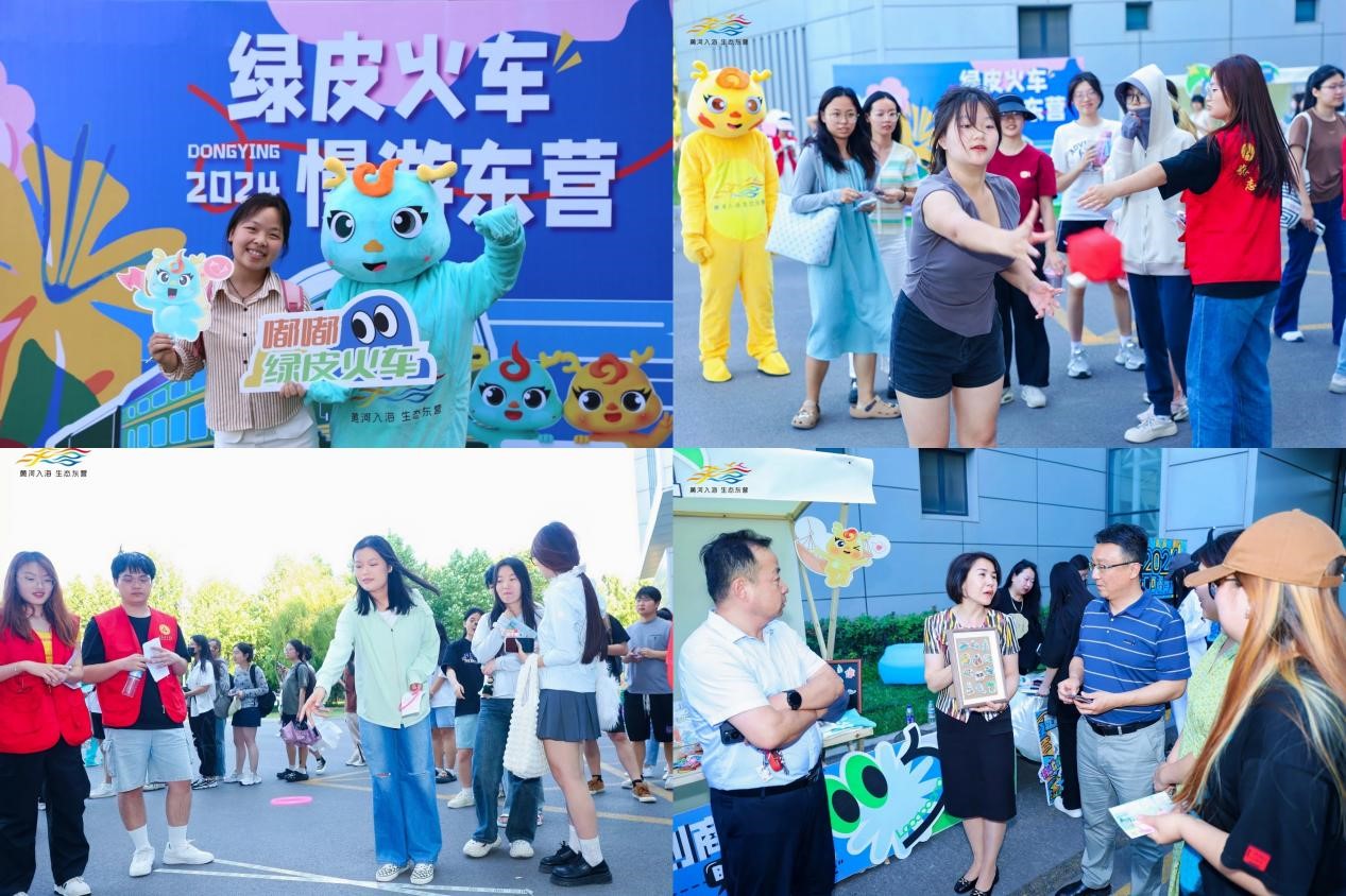 座谈会结束后,大家一起来到“绿皮火车·慢游东营”宣传推广活动现场,阿局长热情地向大家介绍东营特色城市IP河东东、海营营、小鸟的朋友及其他文创产品。DP打卡点和游戏互动区也吸引了很多同学参与,来自东营市广饶县的缪欣余同学兴奋的说到:“非常开心在学校看到家乡的推介活动,欢迎大家来东营玩!”