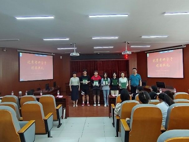 齐振花、冯亮为2024年考研成功被录取的学生代表颁奖,鼓励同学们继续努力,在以后的深造中取得更好的成绩。2024年经济学院(科创金融学院)有28位同学考取国内研究生,2位同学考取国外研究生,考研率增长了3个百分点。