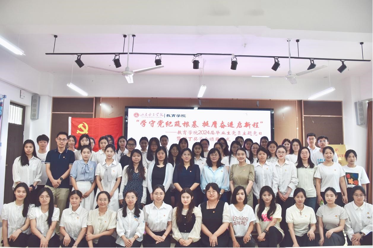 为推动党纪学习教育走深走实,加强毕业生党员离校教育。6月25日,教育学院学生党支部召开“学守党纪筑根基 挺膺奋进启新程”教育学院2024届毕业生党员主题党日暨园丁奖学金颁奖活动。学院党委书记崔江宁、党委副书记路敏及学院部分党员教师代表和全体学生党员参加此次主题党日活动。