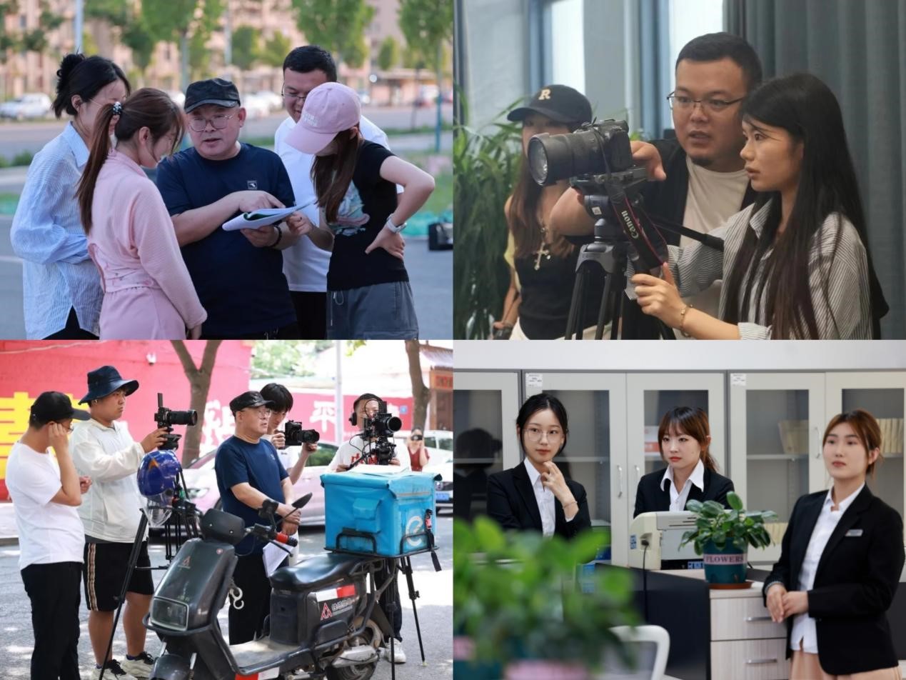 6月13日,学校与乐陵市城投文旅发展有限公司、山东映天文化传媒有限公司联合摄制的网络微短剧《奔跑吧!职场小白》开机。作为联合摄制单位,传媒学院师生从短剧策划、剧本创作到现场拍摄、后期制作等,参与了全流程制作环节。