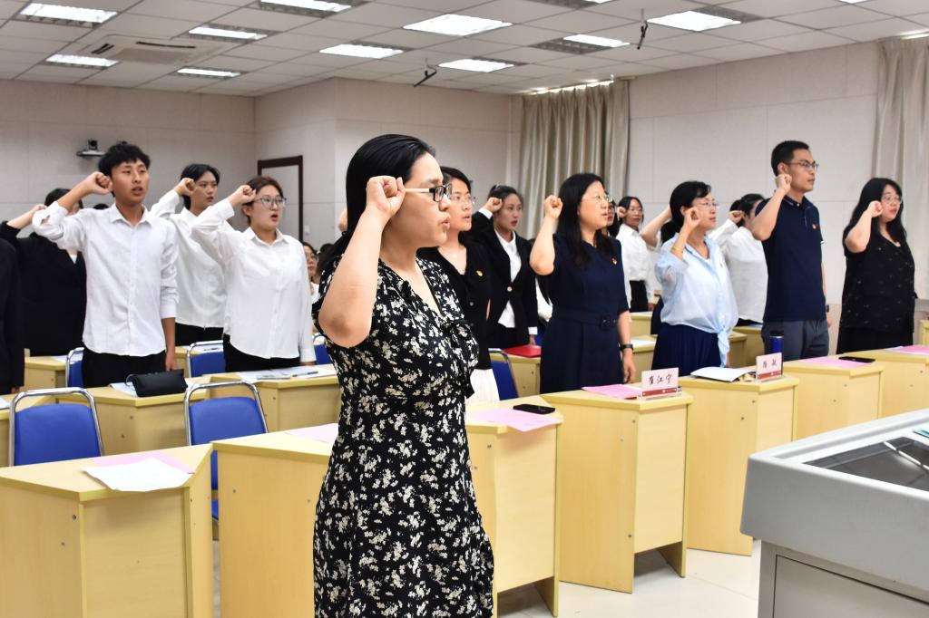 为庆祝中国共产党成立103周年,扎实开展党纪学习教育,进一步提升党员的党性修养,增强党组织的凝聚力和战斗力。6月28日,教育学院党委举行“知规守纪扬正气 红心向党庆七一”主题党日暨新发展党员入党宣誓仪式。党委书记崔江宁、党委副书记路敏、部分师生党员和入党积极分子代表参加此次活动。