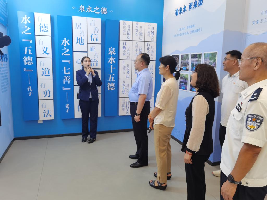 在基地讲解员的引领下,支部党员沿着“清风大道”前行,迈过“崇廉之门”,全身心地投入到“听·泉廉之声”“寻·泉映清辉”“悟·泉心匠作”这三大篇章的参观体验中。整个展览运用了丰富多样的现代科技手段,以可听、可视、可感、可触的生动形式,将“泉”与“廉”的元素完美融合。这使得大家沉浸泉水文化、名人事迹以及传统文化的氛围里,深刻感受到清廉之风,真正实现了景中思廉、境中悟廉、心中有廉,深刻理解了廉洁纪律的思想核心与时代意义。