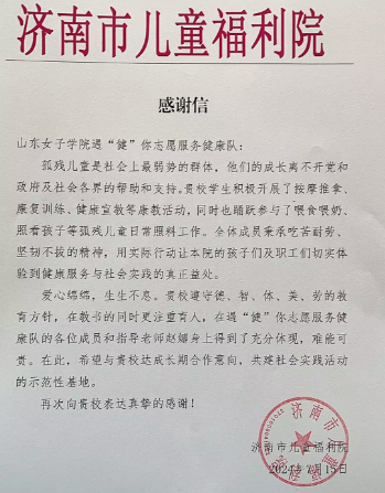 7月9日-15日,社会与法学院遇“健”你志愿服务健康队带着满腔的热情与关爱,踏上了三下乡的征途。活动自启动以来,志愿者们以青春之名,用实际行动诠释了爱与责任的深刻内涵,为济南市儿童福利院的孩子们送去了温暖与关怀。