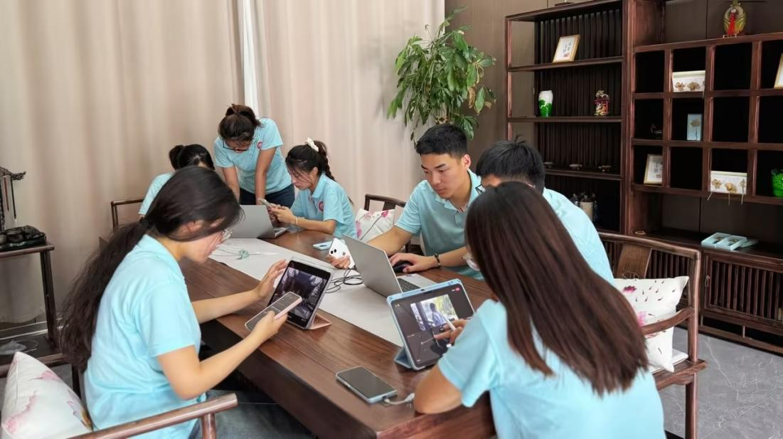 在宣传推广方面,实践队员们充分发挥了创新创业学院的专业优势,采用了线上直播这一新颖的宣传方式,推广宣传南阳古镇的特色婚礼文化及文创产品,助力乡村旅游业发展。队员们深入走访调研商户,邀请当地的文化名人、手工艺人进行现场展示和讲解,体验文创产品制作,感受古镇文化的独特魅力。为了更好的宣传古镇,她们身着华丽汉服,参与古镇文旅宣传片的拍摄和剪辑工作,吸引了大量网友的观看和点赞,提升了南阳古镇的知名度和美誉度。