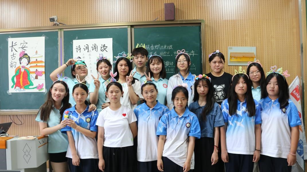 在玉皇庙镇中学,志愿服务队精心策划了一系列丰富多彩的支教活动,实践队员们依托联合国开发计划署“她×数字未来”创造营的理念,设计了一系列有趣的数字游戏和互动环节,如编程小挑战、数字艺术创作等,让孩子们在轻松愉快的氛围中掌握数字技能,引领孩子们探索数字世界的奥秘,激发对科技的兴趣;进行创意扭扭棒制作,引导孩子们发挥想象力,创作出自己的手工作品,使之在动手实践中培养了创新思维和团队协作能力;此外,开设传统经典文化诗词诵读课,与创意手工相结合,让孩子们在互动问答中、在朗朗书声中,领略中华文化的博大精深。更加深了对传统文化的理解和热爱。