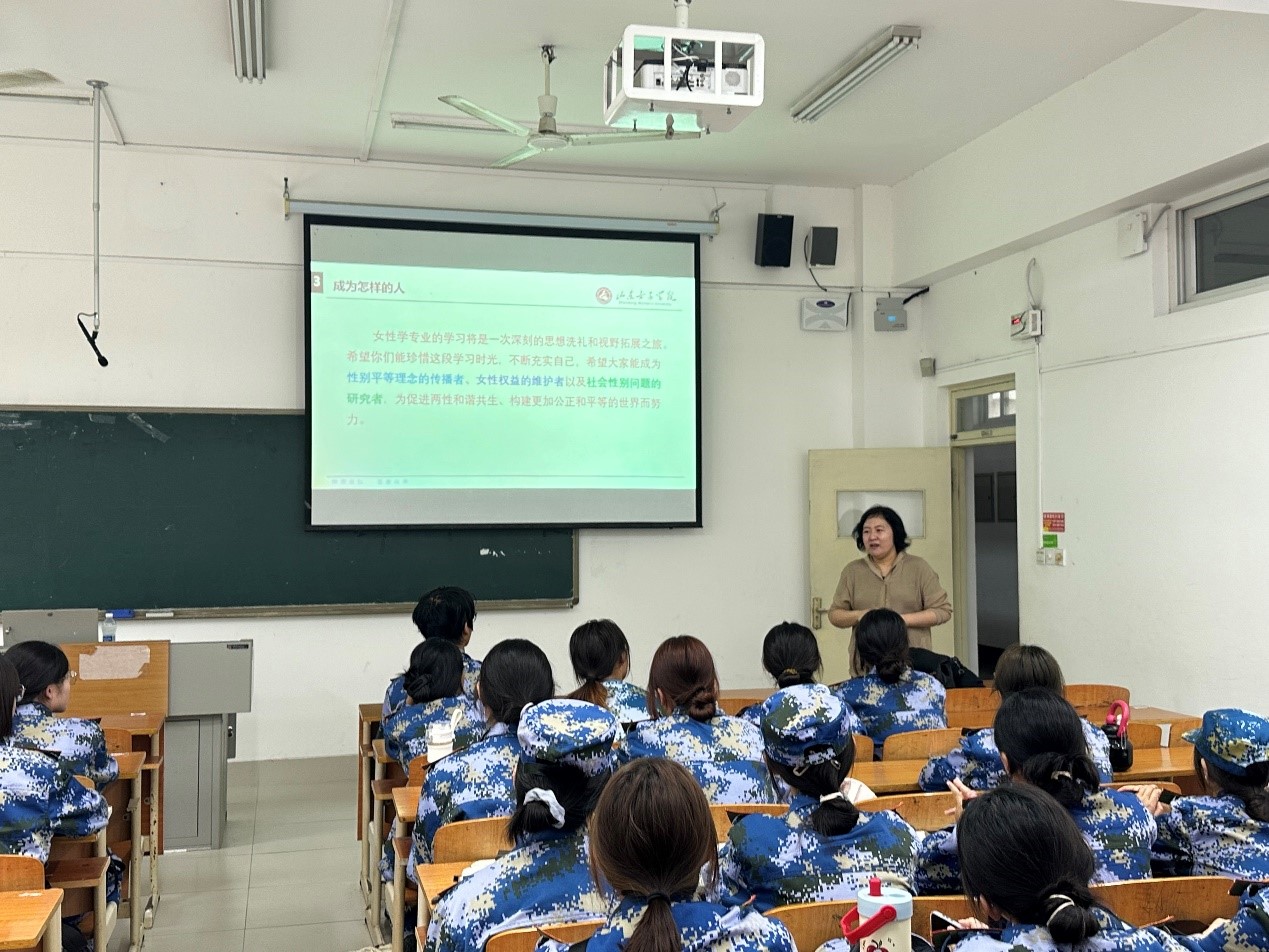 女性学专业见面会上,李桂燕向新生介绍了专业定位、课程设置,和同学们讨论了“女性学是什么”“女性学学什么”“以后成为怎样的人”等问题,同学们与老师依次做自我介绍、积极互动,表达了对于大学生活的期许。此次见面会不仅加深了新生对女性学专业的认知,更为他们搭建了一个与老师交流的平台,为未来的学习与生活奠定了坚实的基础。