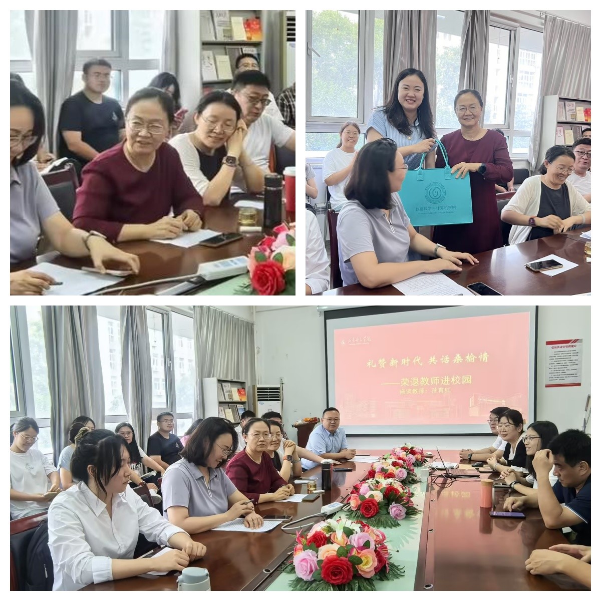 随后,“礼赞新时代,共话桑榆情”环节温馨展开。学院荣退教师孙育红躬耕教坛数十载,培养了一批又一批的优秀学子,她以蜡烛般的奉献精神,积极投身于学院发展和专业发展,多次荣获“最美教师”、优秀党员等荣誉称号。如今,作为荣退教师重返校园,孙老师凭借其丰富的教学经验以及感人至深的从教故事,为在座的老师们上了一堂生动的师德课。孙老师爱岗敬业、无私奉献的精神激励着大家以身边的榜样为引领,不断提升教书育人的本领,为教育事业贡献自己的力量。