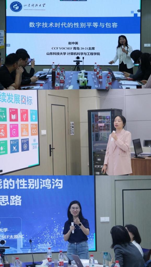 此次论坛由CCF YOCSEF济南副主席田杰(山东女子学院),CCF YOCSEF济南AC郭延辉(山东女子学院)担任执行主席,CCF YOCSEF济南学术秘书宋立莉、副主席苏胜男担任线上主席。论坛特别邀请山东科技大学赵中英教授(YOCSEF青岛2020-2021届主席)、中国传媒大学王琴副研究员(中国妇女研究会常务理事)、太原理工大学董媛香教授(YOCSEF太原2021-2022届主席)作为引导发言嘉宾。
