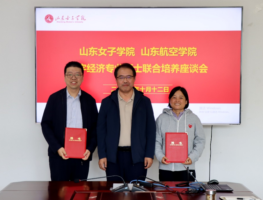 座谈会上,经济学院院长沈传河首先介绍了学院学科建设以及数字经济专业硕士点的筹建情况。随后,王春晖介绍了山东航空学院经济管理专业的发展现状以及山东航空学院数字经济专业硕士点的建设历程。之后,王春晖向学校经济学院两名教授冯亮、孙颖颁发了山东航空学院数字经济专业硕士生指导教师聘书。最后,双方就两个学院建立数字经济专业硕士联合培养基地以及在学科建设方面的合作等相关事宜进行了洽谈。