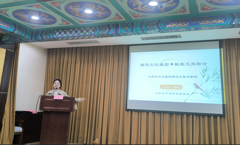 魏甜甜在大会上发表了题为《文化基因赋能山东文旅深度融合径路研究》的演讲。她以浙江文化基因解码工程为个案,深入探讨了如何借助文化基因解码赋能文旅深度融合,特别是针对当前旅游产品的地方文化特色缺失等问题提出了创新性的解决方案,获得了与会专家的高度评价。