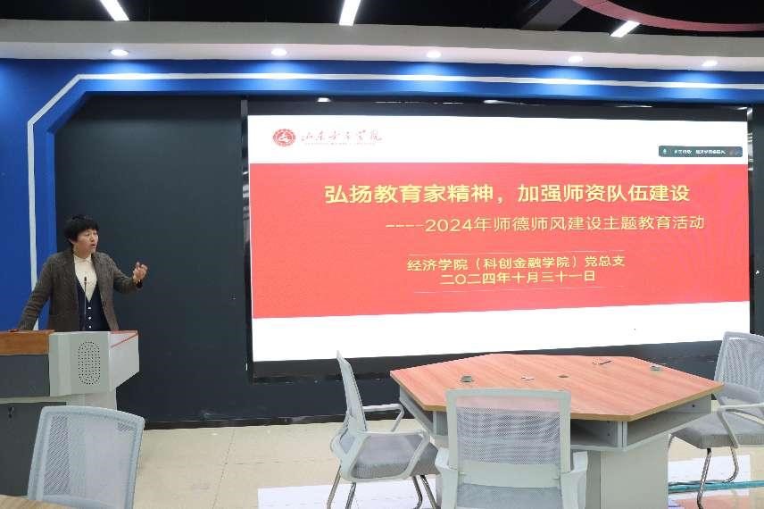 为落细落实学校党委明升体育:师德师风建设的总要求,紧扣学院发展的脉搏,凝聚共识,10月31日,经济学院(科创金融学院)党总支组织开展2024年师德师风建设主题教育活动。此次会议由学院党总支书记齐振花主持,学院全体教师参加。